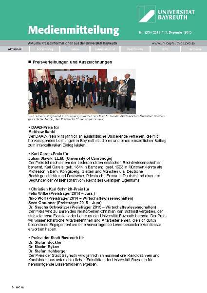 - Dekan der Rechts- und Wirtschaftswissenschaftlichen Fakultät der Universität Bayreuth