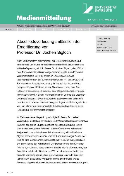 - o. Professor an der Universität Bayreuth (Erstruf)